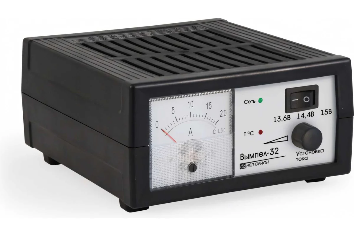 Зарядное устройство Вымпел 32 2043 представляет собой компактный аппарат для зарядки 12 В аккумуляторных батарей широкого спектра емкости. Встроенный вентилятор и специальные отверстия на корпусе успешно защищают модель от перегрева.